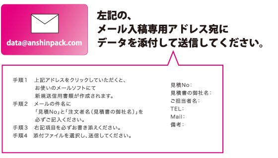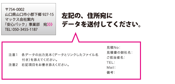 ※ファイル名は、「見積No」の次に「_(下線)」を加えたあと、原稿に添った英数字をふり