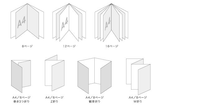 各営業所の地図も掲載したいなどのご希望があれば、8ページ・12ページ・16ページ展開…など、